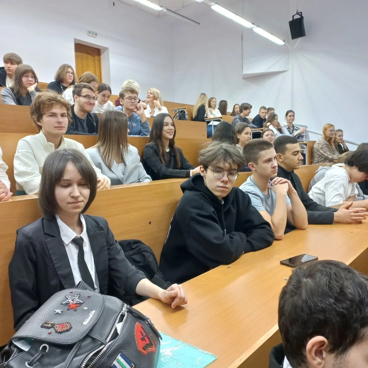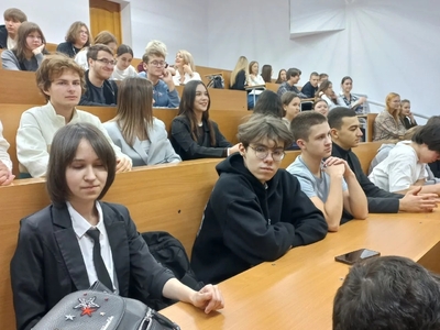 В числе присутствующих на встрече были наши гимназисты, учащиеся 11а, 11в и 11г классов и педагоги Билль Ирина Александровна и Киселева Елена Николаевна. Перед ребятами выступили руководители института - директор института - заведующий кафедрой публичного и уголовного права, кандидат юридических наук Попова Лариса Александровна и кандидат исторических наук, доцент Ушакова Надежда Владимировна.