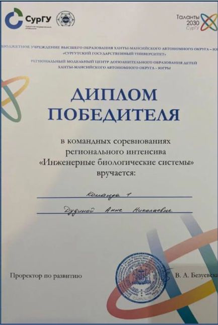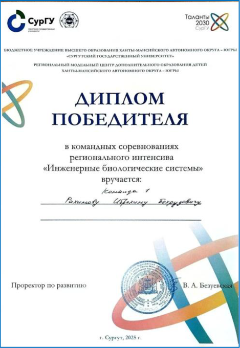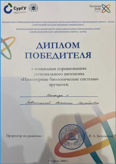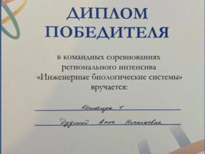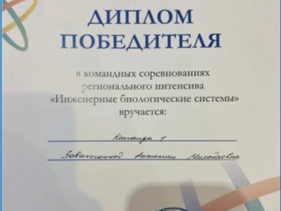 Поздравляем Победителей в командных соревнованиях регионального интенсива «Инженерные биологические системы»!